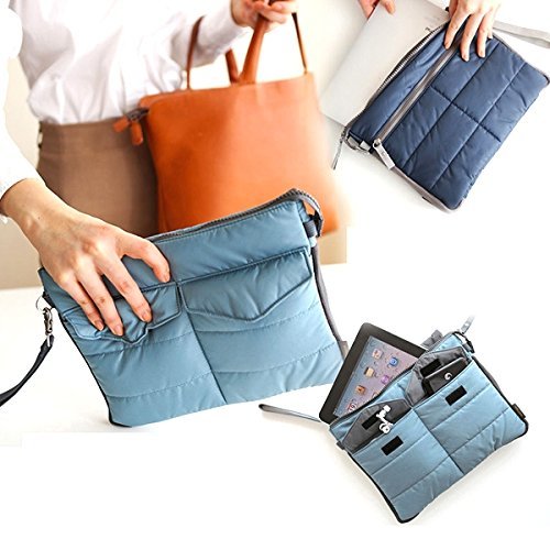 WINOMO Multi-functional Nylon Zippered Gadget Pouch Bag in Bag Handbag Travel Storage Bag Organizer for iPad Tablets (Blue)