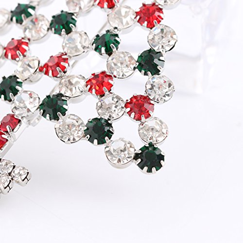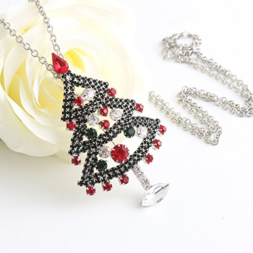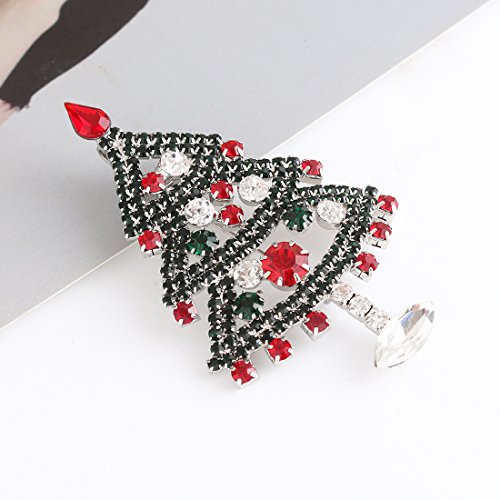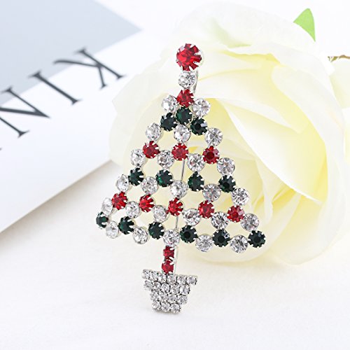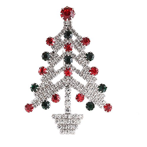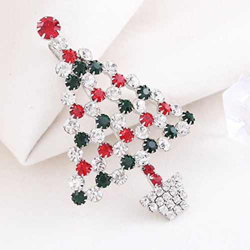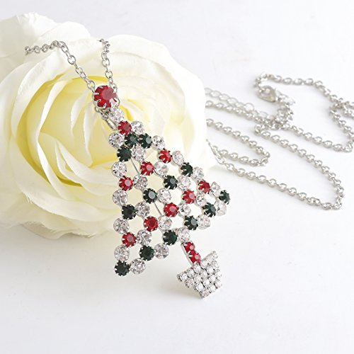 -. Feature : It's a christmas tree pendant necklace ,also a christmas tree brooch . the chain is removeable ,with chain it's necklace and without chain it's a brooch .you can use it as you need . / Material: Rhodium Silver Plated Alloy, Crystal / Measure: 3.0 inch L x 2.0 inch W / Weight: 13.5 grams / Celebrate the most festive time of year by showing off the most festive brooch you can find. With a detailed tree and star design and red, white, and green crystals, this fun crystal christmas brooch pin is sure to get you ready to rejoice
