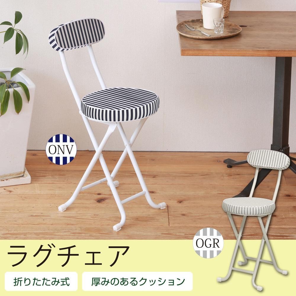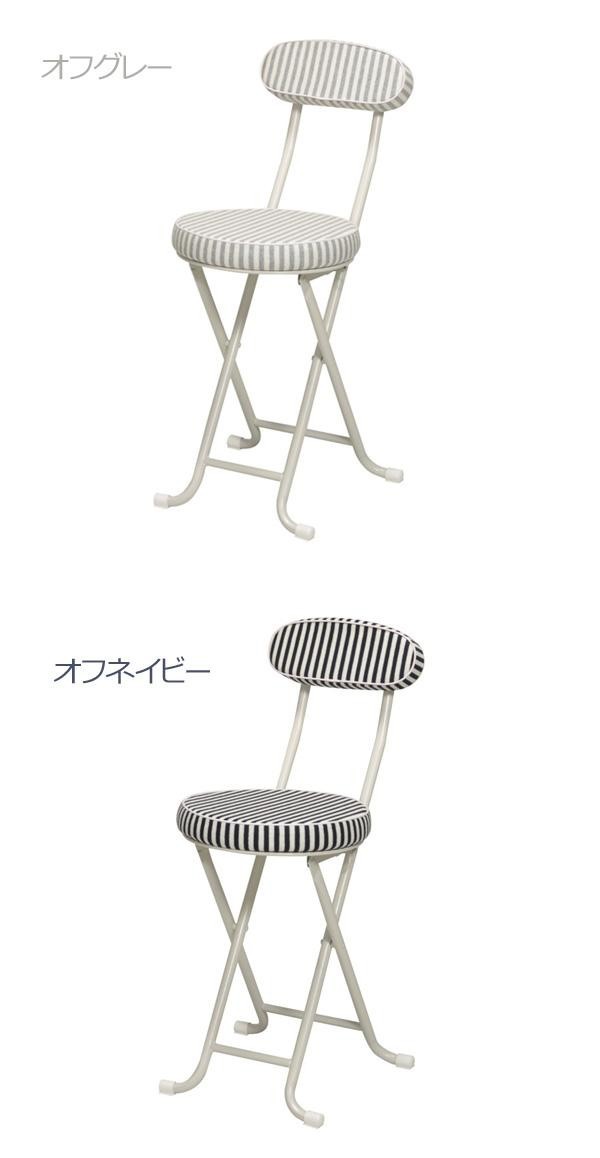 ストライプ柄がオシャレな折りたたみチェア。座面・背もたれには、肌触りのよい日本製の生地を使用しています。クッションは厚めで座り心地抜群。折り畳んで収納出来るので、キッチンやリビング・急な来客時にも活躍します。脚先はゴムカバー付ですので、傷・音・ガタつきを防ぎます。 |