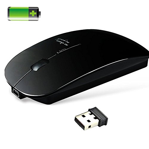 Edota® MS-D1 Ultra Slim Rechargeable Li-Battery 2.4 GHz Optical Wireless Mouse for Computer and PC, Switchable DPI 800/1000/1400, 4 Buttons with Nano USB Receiver (Black)