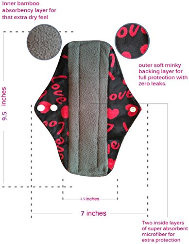 PRETTY LOVE DESIGN - Reusable menstrual pad outer is feminine and discrete. Fold over and snap into place. For Medium flow to Heavy Flow.