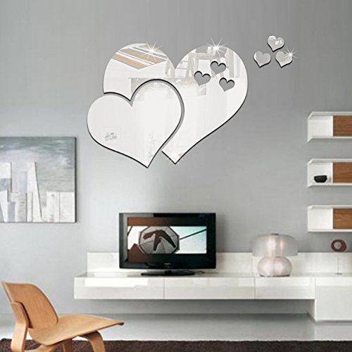 -. Title : Taloyer Mirror Style Modern Acrylic Wall Stickers Removable 3D Love Hearts Detachable DIY Decal Vinyl Mural Home Decor