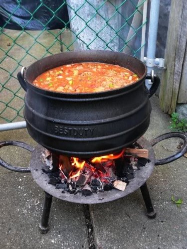-. Brand : Best Duty -. Color : Black -. EAN : 0022099572961 -. Feature : The 3 legs and round belly shape allows even heat distribution around the pot. / Maintains the liquids at the lowest point to prevent the food from burning. / Domed lid allows for optimal internal heat circulation. / The tall legs make it ideal for cooking directly over fire/coals or gas burner. / 29.6 Quarts -. Label : Best Duty -. Manufacturer : Best Duty -. ProductGroup : Kitchen -. ProductTypeName : KITCHEN -. Publisher : Best Duty -. Studio : Best Duty -. Title : Best Duty Cast Iron Potjie Pot Size 10 - Include complementary Lid Lifter Knob ($9.95 value) -. UPC : 022099572961