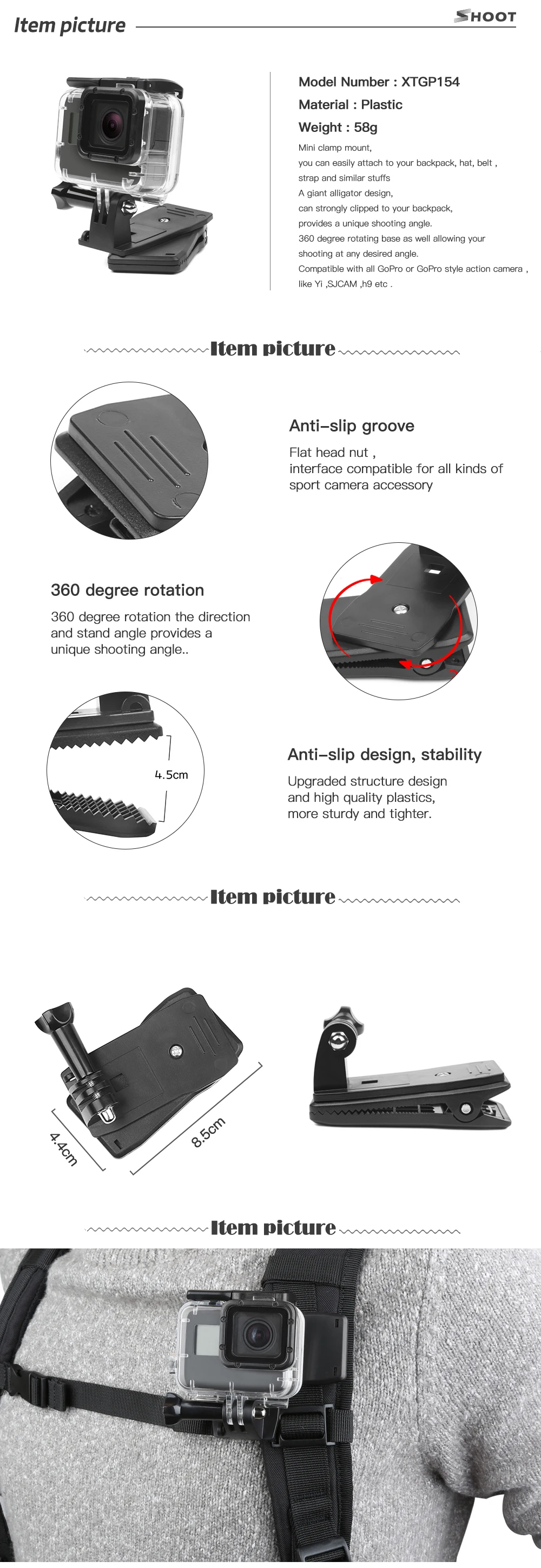 Compatible Action Camera Brand:SONY,EKEN,SOOCOO,GoPro,Sjcam