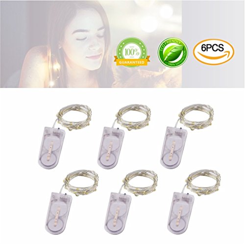 Shineled Pack of 6 LED Starry String Lights with 20 Micro LEDs on 6.6feet/2m Silver Coated Copper Wire, Fairy Lights Battery Powered by 2x CR2032(Incl), for Wedding Centerpiece,Party(Warm White)