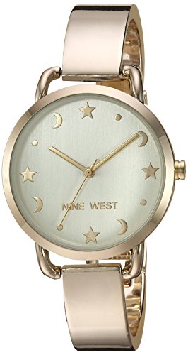 Mineral crystal lens; light champagne dial with gold-tone hands and moon, star or dot markers