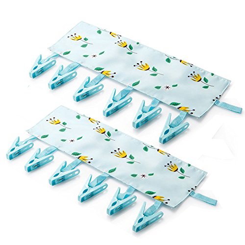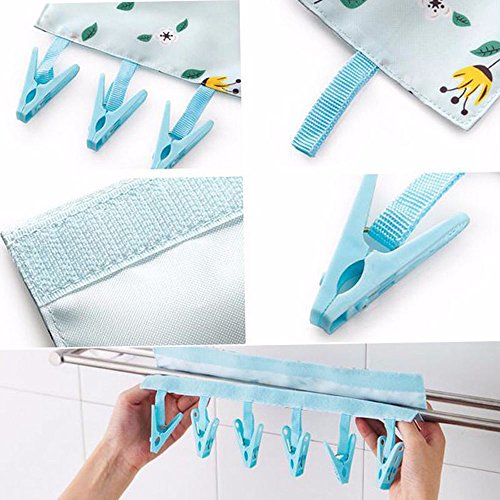 JCBIZ 2-Pack Multifunction Bathroom Racks Cloth Hanger Clothespin,Racks Travel Portable Velcro Folding Cloth Drying Hanger with 6 Clips for Towels Socks Drying Underwear.(Light Blue)