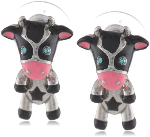 Betsey Johnson Women's Cow Stud Earrings Black Stud Earrings