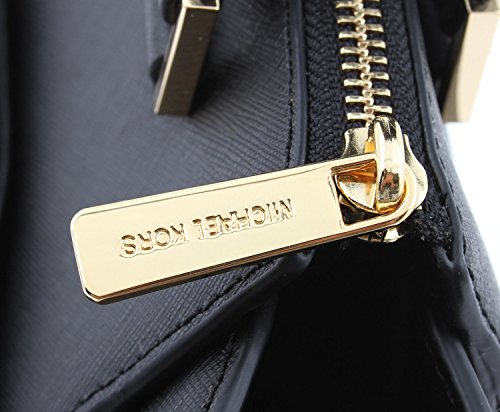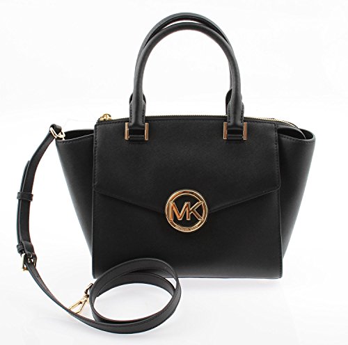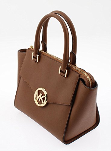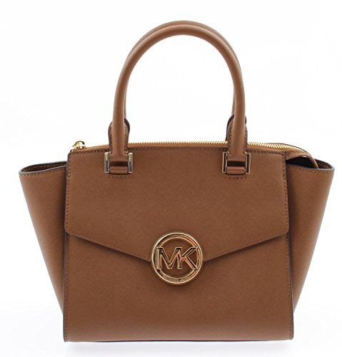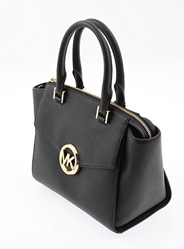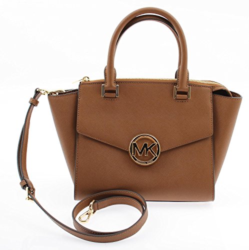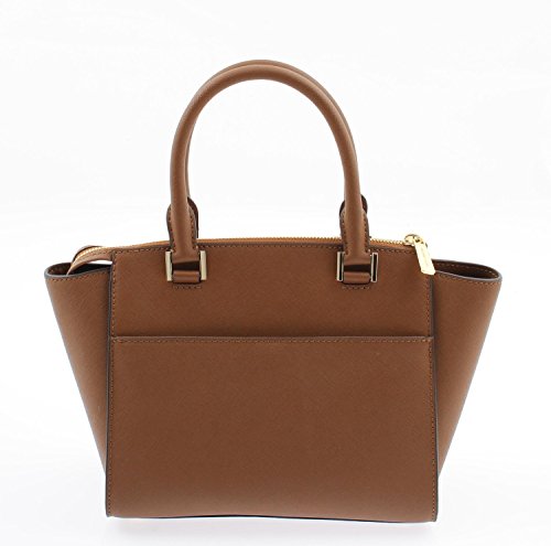 -. Brand : -. Department : womens -. Feature : Top Zipper closure / Exterior features gold-tone hardware, MK signature logo, front and back slip pockets. / Double leather handles with 4" drop, long strap for crossbody. / Lined interior with four slip pockets and one zip pocket. / 13"(L) x 9" (H) x 5.5" (W) -. Model : 35S6GHUS2L -. ProductGroup : Shoes -. ProductTypeName : HANDBAG -. Size : Medium -. Title : Hudson Medium Satchel in Saffiano Leather 35S6GHUS2L