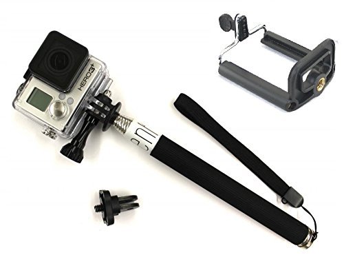 Having a universal ¼ inch base thread, it gives you the advantage of being able to use with your GoPro, as well as with SLR, digital camera, video camera, and much more. With a handy bonus cell phone holder, this monopod can be converted into a selfie stick. This enables you to not only use this monopod with you GoPro camera, but with your cell phone as well.