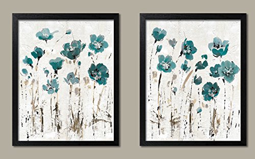 Gango Home Dcor Beautiful Teal and Brown Watercolor-Style Floral Print Set