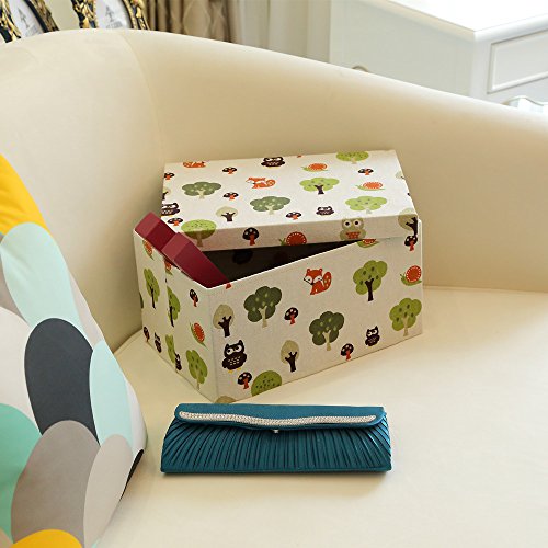 -. Feature : High quality, fabric storage boxes , art & craft. / Stylish, hardboard frame, cartoon pattern fabric woven, Set of 4 storage bins with lid. / Multiuse storage boxes for cosmetics,books,toys,coins,album,fruit,underware, baby clothes and other small sundries. Utility and suitable for office,home . Fits in your office table, bedroom, living room , closet, shelves or anywhere in the house. / Set of 4 baskets measuring:15.75"Lx11.81"Wx7.87"H(extra large),14.17"Lx10.24"Wx7.48"H (large),12.60"Lx8.66"Wx6.69"H(medium),11.02"Lx7.09"Wx5.91"H(small). Please note that these products are handmade and the sizes may vary ±1 inch. / THE BEST CUSTOMER SERVICE: - With our famous 100% satisfaction, you can have peace of mind. If for any reason you're not completely happy with your purchase- if it breaks, if it's damaged in shipping, or even if you change your mind - simply let us know and we will either replace it or refund your money, your choice!