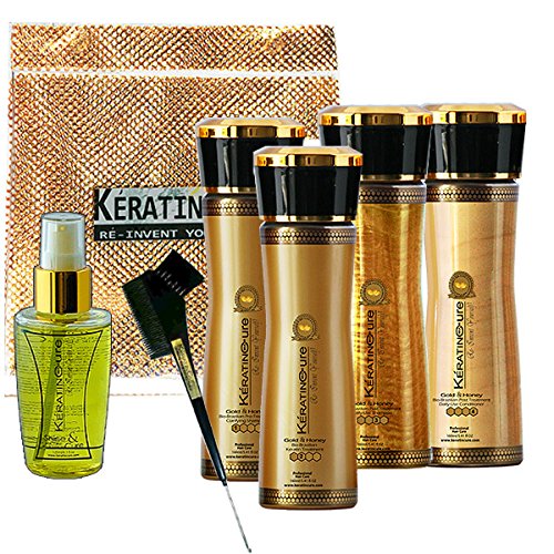-. Title : Keratin Cure Brazilian Global Complex Blow Out Gold & Honey Bio 160 ml / 5.41 oz 7 Pieces Kit Contains Argan Oil, SAFE FOR KIDS with serum