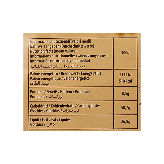 원재료:소맥분,코코넛 오일,《호에이파우다》(유제품)고, 글루코스 시럽,설탕,탈지분유(크림내5%)고, 코코넛 flake,크림 파우더7%고, 대두분,탈지분유,맥아 엑기스,포도당,마스 카루 Edgar Allan Poe 네 파우더(유제품)고, 《헤제루낫츠》,저 지방 코코아,커피 파우더,소금,스파이스,팽창 제,유화 제(대두 유래)고, 향료