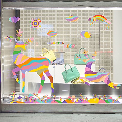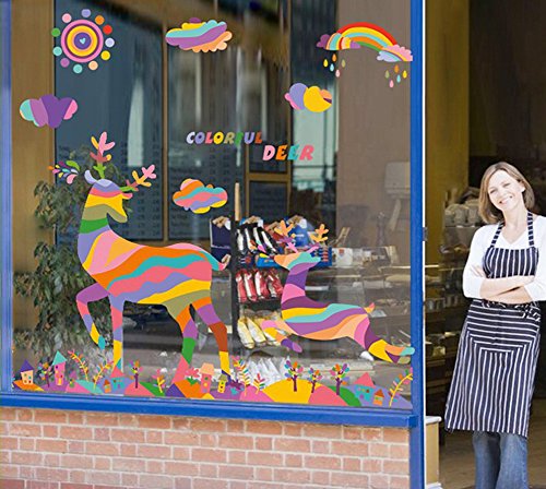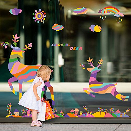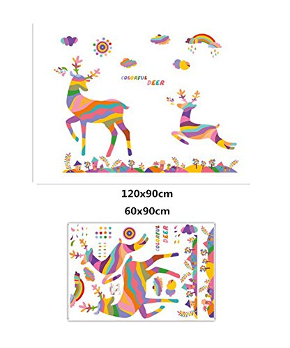 -. Title : Wallpark Colorful Rainbow Sun Running Deer Elk Removable Wall Sticker Decal, Children Kids Baby Home Room Nursery DIY Decorative Adhesive Art Wall Mural