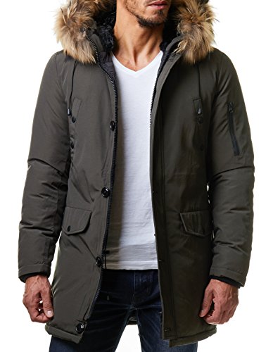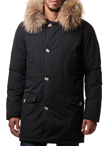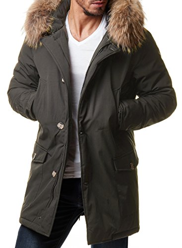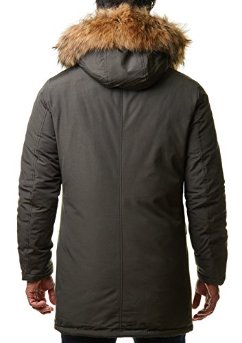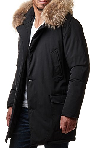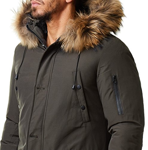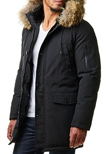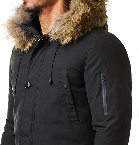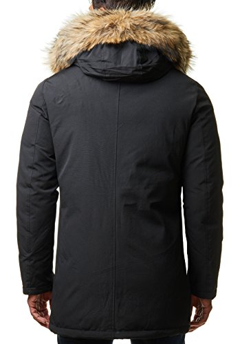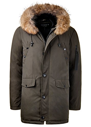 Burocs Herren Winter-Jacke Lang Parka Echtfell-Kapuze Schwarz Khaki BR1626
