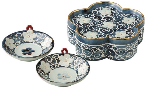 일본 그릇 서해 도기 당초무늬 도라지꽃 테바코(소형궤) 세트 11481