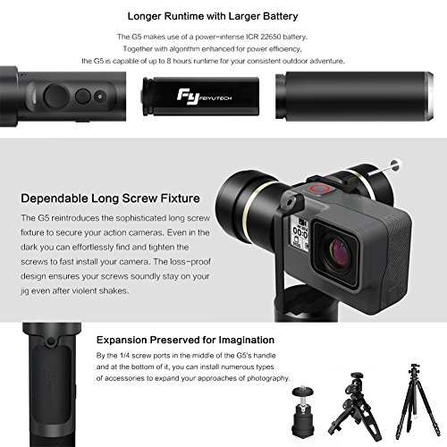 Excellent Craftsmanship: World's first unibody motor arm for sports camera gimbals to ensure better anti-shake performance, built from solid aluminum alloy, super lightweight and comfortable by rubberized handle grip, up to 8 hours' runtime from a single 22650 Li-ion battery.