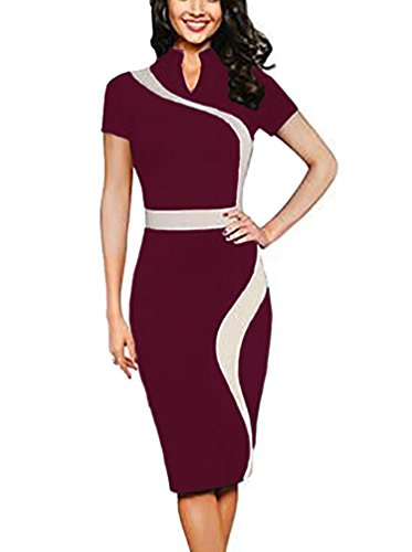 -. Feature : 60%Polyester/25%Spandex/15%Cotton. / Stand Collar and Cap Sleeve,the Zip on back,Fashion Elegant Style Cutting / For work,business office,casual, cocktail,party and so on. / Low Temperature and Hand-clearning available for washing. / Our products are based on US sizes. If you are still not sure of the size of the clothes, carefully check the size table before purchasing in Product Description
