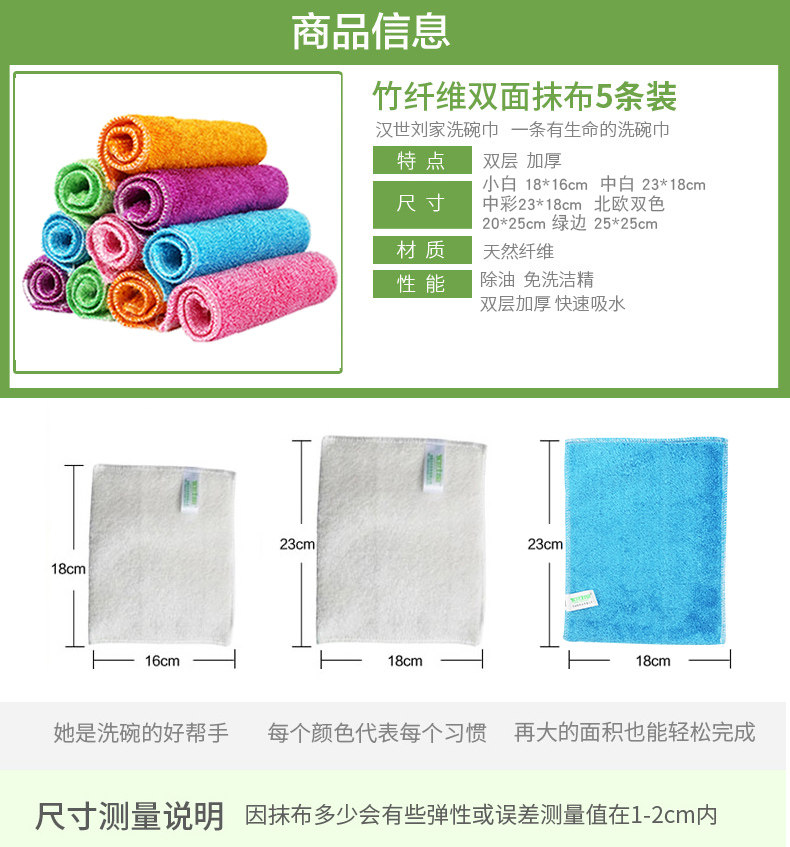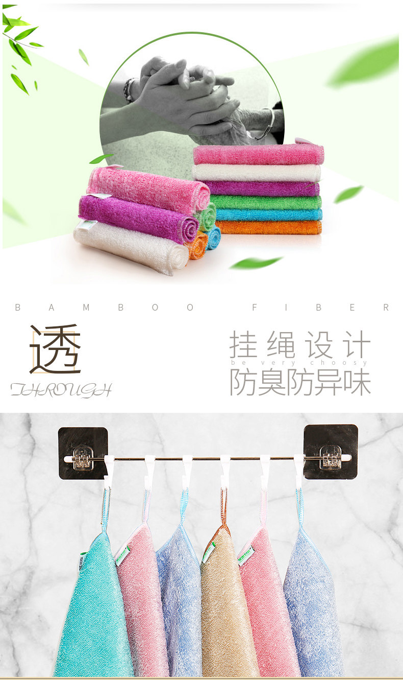 厨房抹布吸水不掉毛加厚竹纤维洗碗巾不沾油百洁布洗碗布5条装