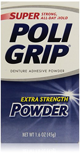 PoliGrip Super Denture Adhesive Powder, Extra Strength, 1.6 oz (45 g) One Bottle