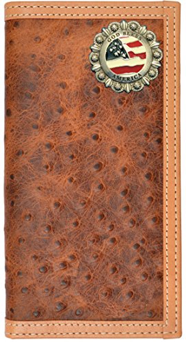 (Genuine Texas Brand)/Accessories/Wallets, Money Key Organizers/DIRECT FROM USA/Custom God Bless America Long Ostrich Print Leather Wallet Brown
