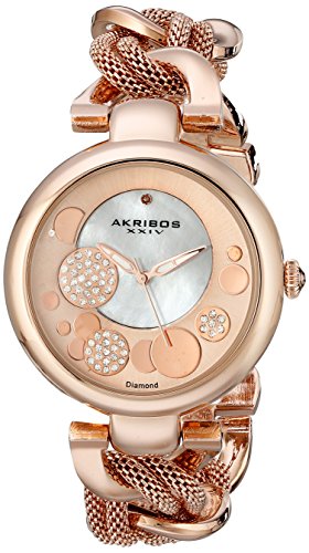 -. Title : Akribos XXIV Women's AK643RG Lady Diamond Rose-Tone Dial Mesh and Chain Link Bracelet Watch
