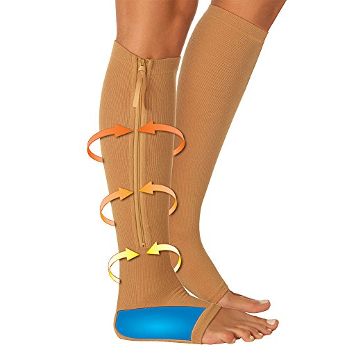 - Deluxe open-toe zipper socks feature triple graduated compression to help reduce swelling, improve circulation, and relieve sore feet and legs.