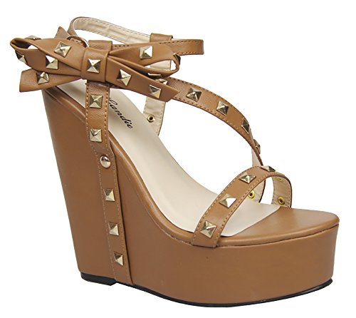Binding : Apparel Product Description Fun, sassy and just a bit funky! We know you will like these platform wedges because they go with any outfit in your closet. Featuring faux leather straps, a bow at the anklet, and adjustable ankle strap. These open toe wedges are finished with metal stud detailing. 0