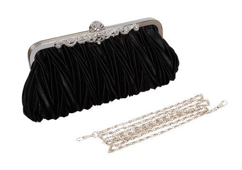 Bundle Monster Womens Vintage Satin Cocktail Party Handbag w/Shoulder Chain-BLACK