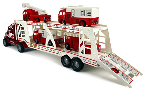 -. Binding : Toy -. Brand : Velocity Toys -. EAN : 0637801788358 -. Feature : FIRE DEPT. TRAILER CHILDRENS KID FRICTION TOY TRUCK w/ 4 FIRE TRUCKS: Friction Powered Semi With 4 Fire Trucks On Trailerl / INCLUDES 4 TOY FIRE TRUCKS: Mini Fire Trucks Can Be Played With Seperately, Trailer Is Detachable / FRICTION POWERED: Give Semi A Push And Watch It Move Forward, No Batteries Required / ROTATING CRANES: Mini Fire Trucks With Rotating Cranes / SIZE DIMENSIONS: Semi Truck Approx. Length: 22" -. IsAdultProduct : 0 -. Label : Velocity Toys -. Manufacturer : Velocity Toys -. MPN : 4268 -. PackageQuantity : 1 -. PartNumber : 4268 -. ProductGroup : Toy -. ProductTypeName : TOYS_AND_GAMES -. Publisher : Velocity Toys -. Studio : Velocity Toys -. Title : Fire Dept. Trailer Children's Kid's Friction Toy Truck Ready To Run w/ 4 Toy Fire Trucks, No Batteries Required (Colors May Vary) -. UPC : 637801788358