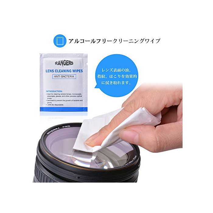 【클리닝 세트】1×30ml무독의 알코올 프리 렌즈 세정액,1×에어 blower,1×렌즈 클리닝 펜,1×클리닝 브러시,1×마이크로 화이버(fiber) 클리닝 크로스,4×렌즈 클리닝 wipe,1×50매 카메라 클리닝 티슈,1 x방수 캐리 백