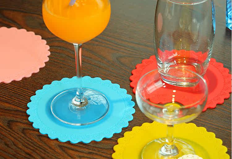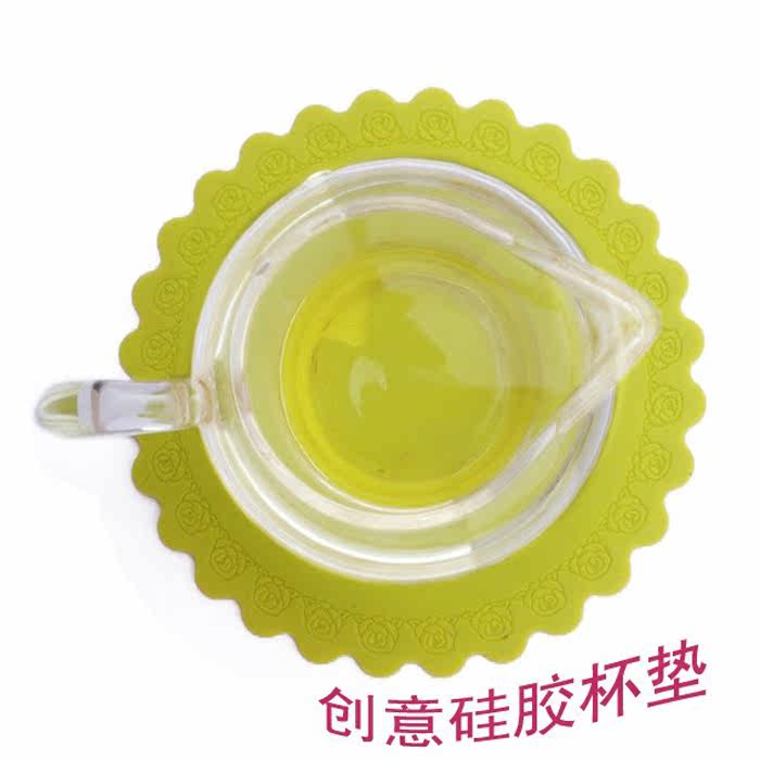 加厚耐磨防烫 玫瑰硅胶杯垫(直径14.3CM)