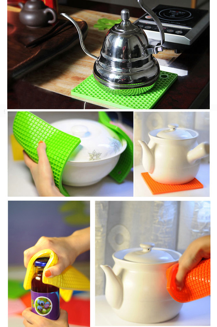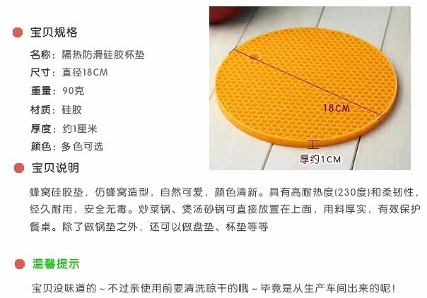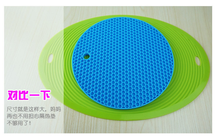 蜂窝硅胶垫,造型可爱,颜色清新。具有高耐热度(230度)和柔韧性,经久耐用,安全无毒。炒菜锅、煲汤砂锅可直接放置在上面,用料厚实,有效保护餐桌。