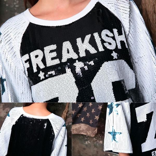 | ダンス衣装 トップス スパンコール 76 ラグランスリーブ ビッグTシャツ 黒 ブラック ホワイト 【ダンス衣装 ヒップホップ トップス レディース 女性 黒 オフショル ダンス 衣装 派手 星 スパンコール 無地 ロンデルブラック】 | |