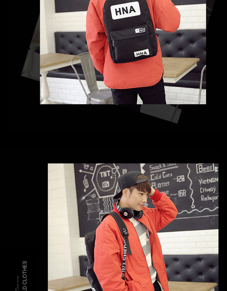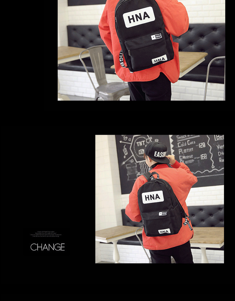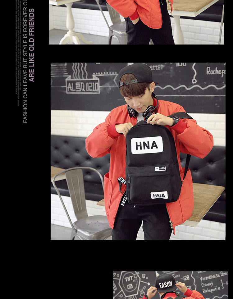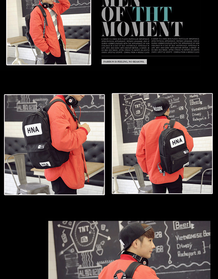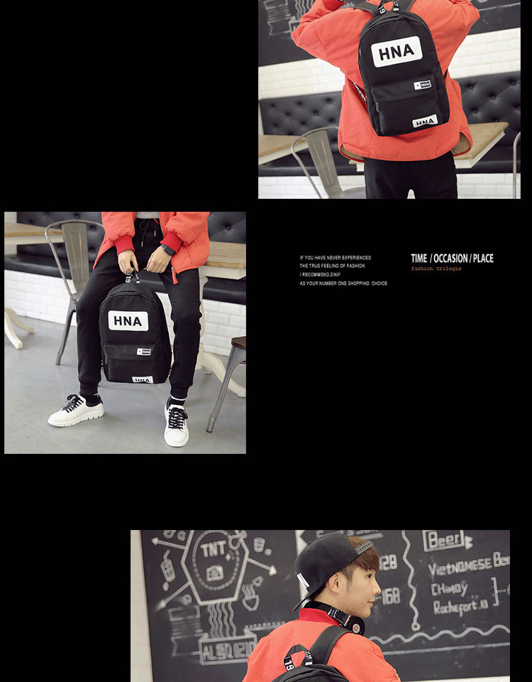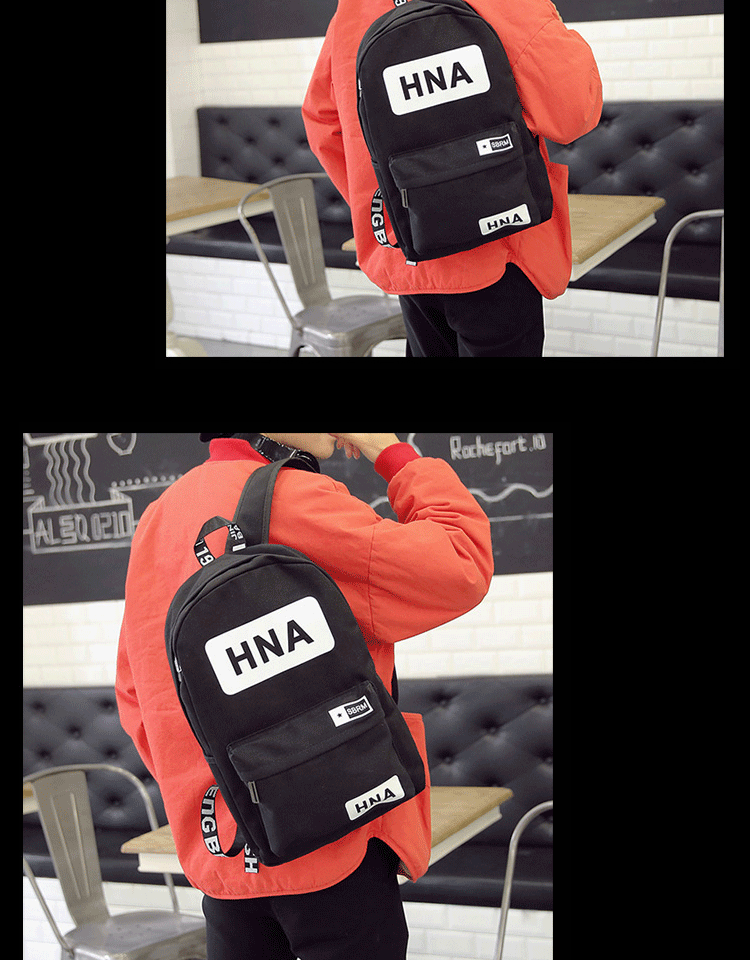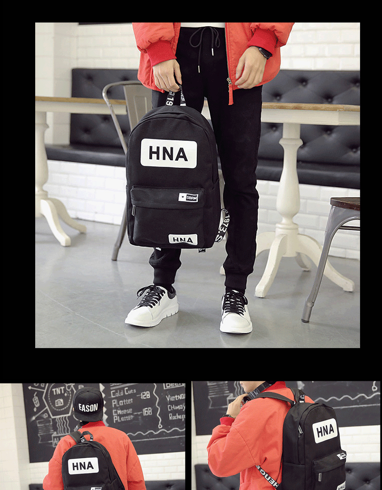 新款韩国潮牌男士背包HNA字母学生帆布书包潮男双肩包学院风