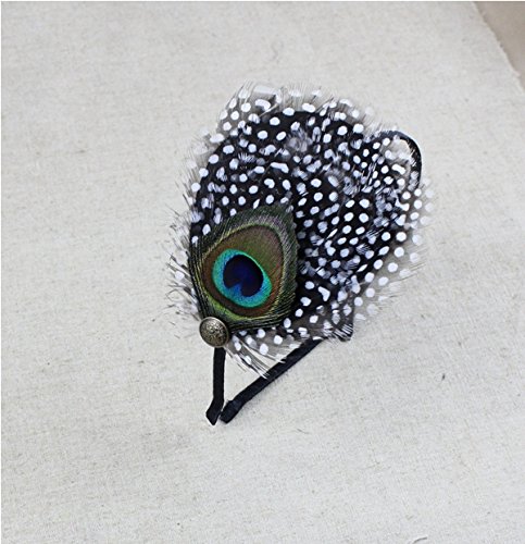Seven Nine Service Elegent Blue Peacock Feather Hair Band Accessory (Blue with white dot)
