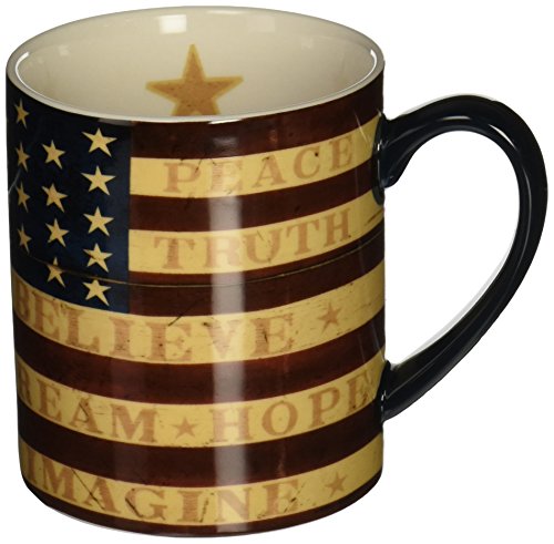 -. Feature : Design - Colonial Flag with Gift Box / Type - Ceramic / Capacity - 14 oz. / Microwave and dishwasher safe / Art-wrapped exterior, full-color icon inside