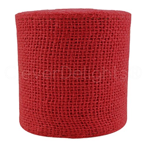 CleverDelights 4" Burlap Ribbon - Wired Edge - 10 Yards - Red Color - Jute Burlap Craft Decor Fabric
