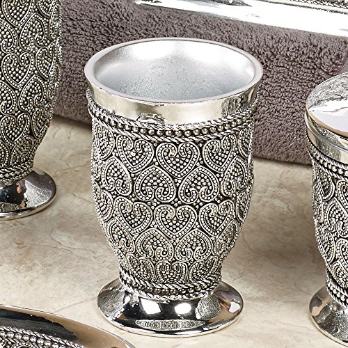 - Matching pieces include cotton swab/cotton container, soap dish, toothbrush holder, tumbler, soap and lotion pump, wastebasket, boutique tissue