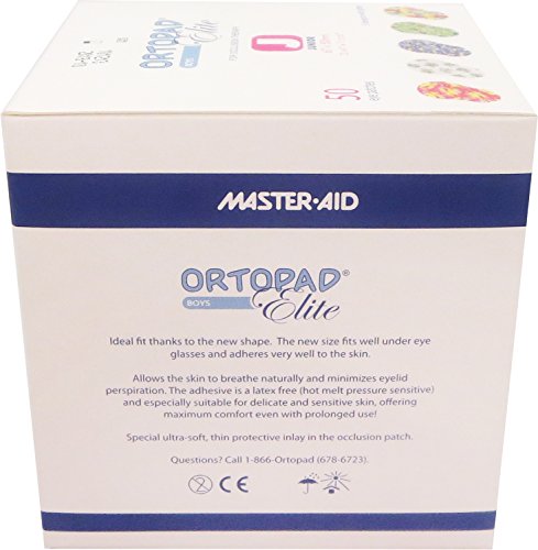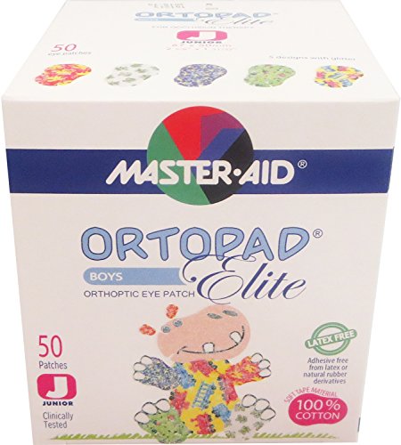 -. Title : Ortopad Elite Boys Eye Patches - Patterns with Glitter Accents, Junior Size (50 Per Box)