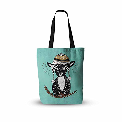 KESS InHouse "Pom Graphic Design Hipster Deer Teal Black Animals Illustration Everything" Tote Bag, 18" x 18", Multicolor