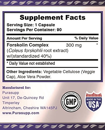 -. Binding : Health and Beauty -. EAN : 6713327747001 -. Feature : Do you strle to keep to a diet, not loosing weight, don't like exercise, holidays coming? / PuraSupp provide highly efficient weight loss supplement that consist of pure forskolin extract - the most highly absorbed form of forskolin extract on the market. / The coleus forskohlii root extract can have profound effects on your appetite as well as overall metabolism to aid weight loss / PuraSupp is manufactured in the USA to FDA standards / RISK FREE PURCHASE - No-questions-asked Money Back Guarantee -. IsAdultProduct : 0 -. Label : PuraSupp -. LegalDisclaimer : Caution: Do not exceed the recommended dose. This product is not intended for pregnant or nursing mothers or children under the age of 18. As always, consult your physician before using this or any dietary supplement. -. Manufacturer : PuraSupp -. PackageQuantity : 1 -. ProductGroup : Health and Beauty -. ProductTypeName : HEALTH_PERSONAL_CARE -. Publisher : PuraSupp -. Size : 90 Capsule Bottle -. Studio : PuraSupp -. Title : Best Pure Forskolin Extract Supplement Standardized to 40% for High Benefit Ultimate Fast Diet Weight Loss 90 Day/Capsule Best Slim Trim Belly Buster Burn Fat Calorie Vegetarian coleus forskohlii