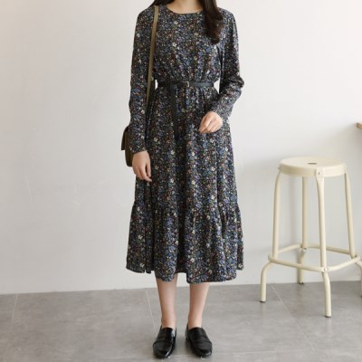 로즈마리 플라워 롱원피스 유니크한 컬러감과 은은한 플라워 패턴의 롱 원피스를 소개해드릴게요 한여름을 제외한 다양한 계절에 활용하실 수 있는 원피스에요 깔끔한 라운드넥으로 단정한 느낌을 더해주고 있고요 지금날씨에는 아우터 안에 코디해 입으시면 좋을 것 같아요 유니크한 컬러감의 플라워 패턴이 룩의 포인트를 주기 좋고요 패턴이 과하지 않아 매력적인 제품으로 추천드리고 있어요 유니크한 디자인의 플라워 롱 원피스로 매력적인 룩을 완성해보세요 *같이 코디 되어있는 벨트는 개인소장 제품이에요 참고 부탁드릴게요 / navy