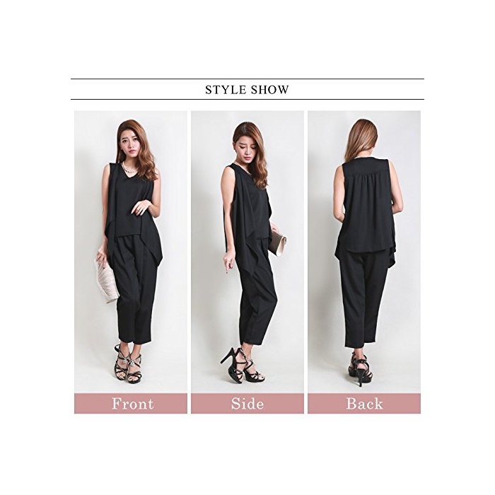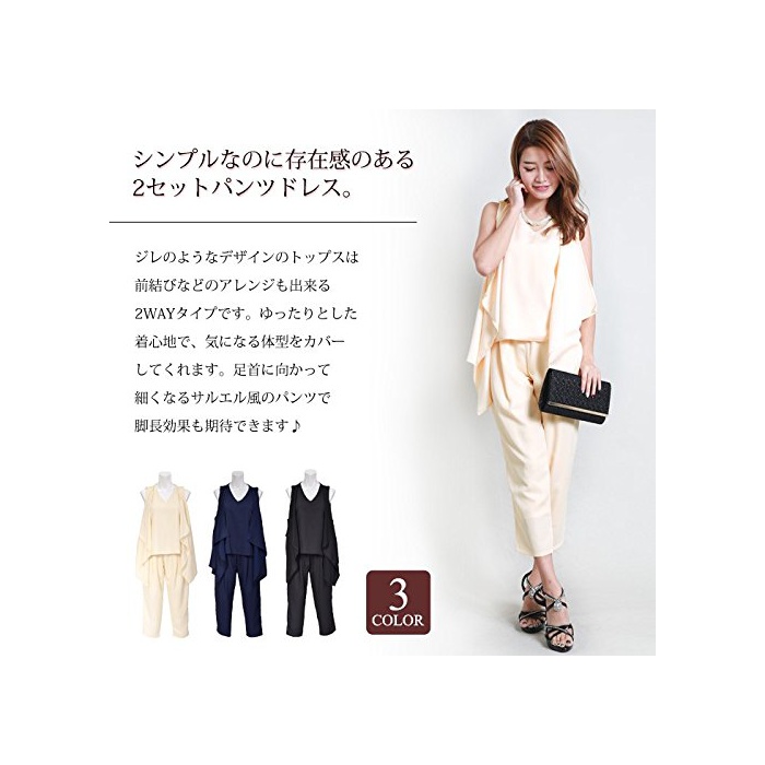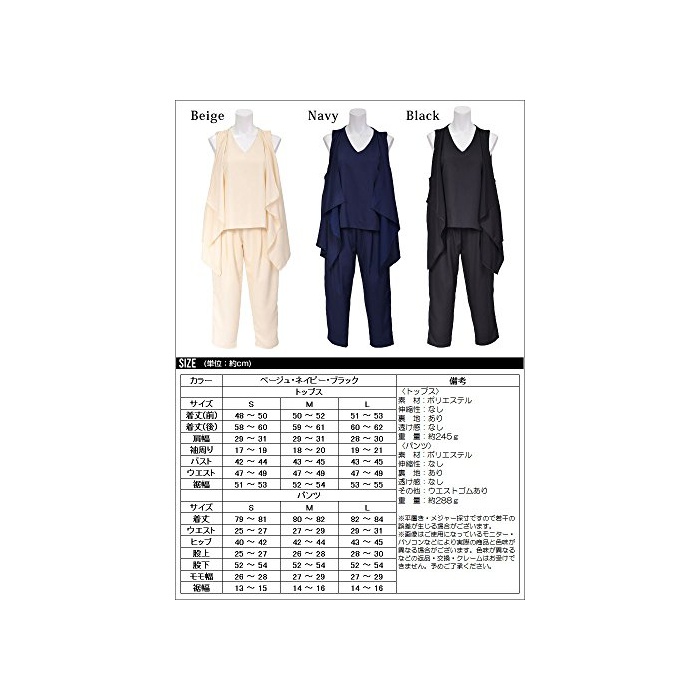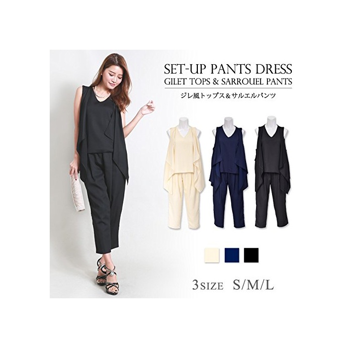 Koei store koeistore팬츠 드레스 지레풍 톱스&사루엘(Sarrouel) 팬츠 상하 세트 2점 세트 PPT Y035-nv-l L 네이비