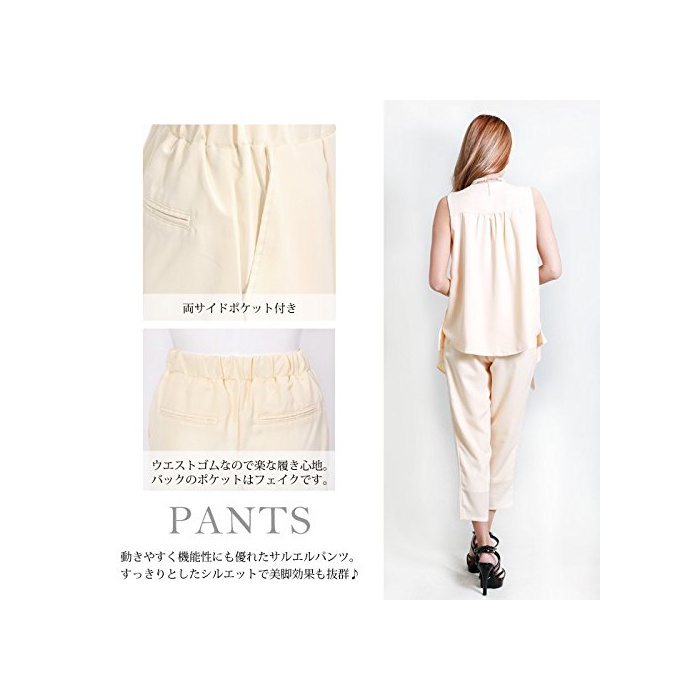 팬츠 드레스 셋업 노슬리브 톱스 테이퍼 드 팬츠 파티 스타일 사루엘(Sarrouel) 팬츠 레이디스