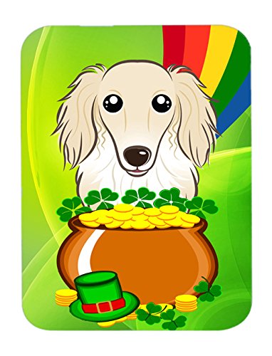 Caroline's Treasures BB1956LCB "Longhair Crème Dachshund St. Patrick's Day" Glass Cutting Board, Large, Multicolor