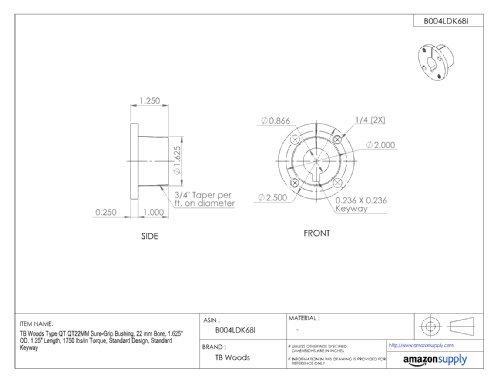 TB Woods Type QT QT22MM Sure-Grip Bushing, 22 mm Bore, 1.625" OD, 1.25" Length, 1750 lbs/in Torque, Standard Design, Standard Keyway