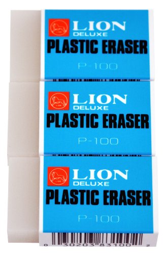 Lion Translucent White Plastic Erasers, 3 EA/Pack, 1 Pack (P-100P)