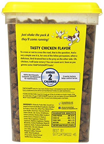 - Feature : Under 2 calories per treat / Tasty chicken cat treat / Crunchy outside and soft inside / Nutritionally complete and balanced for adult maintenance